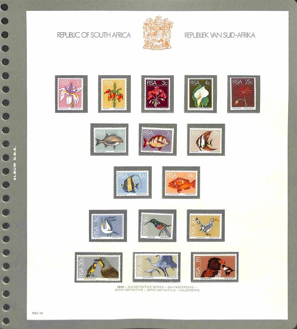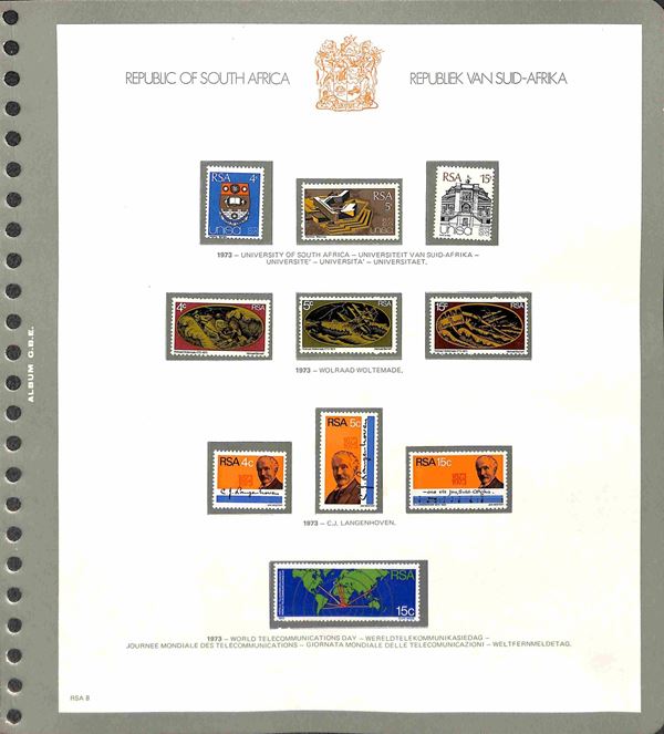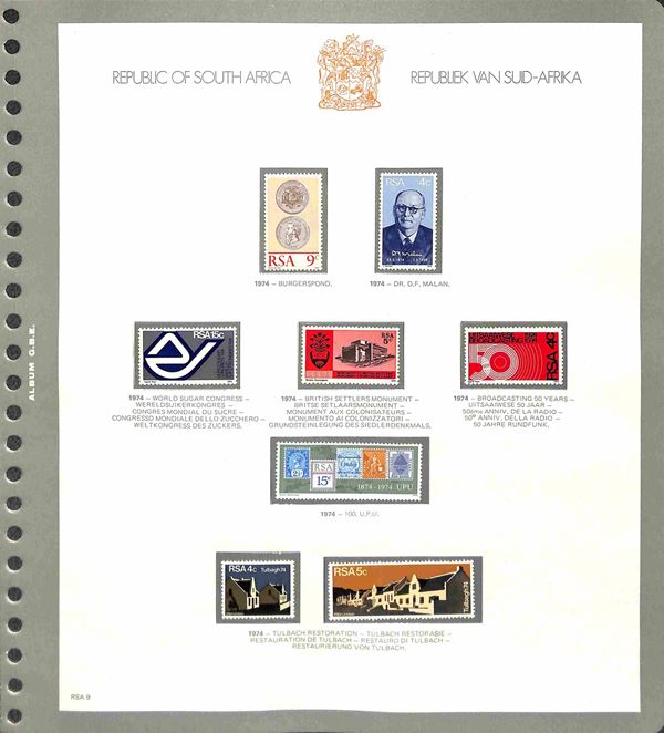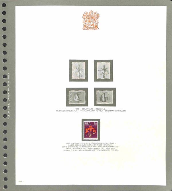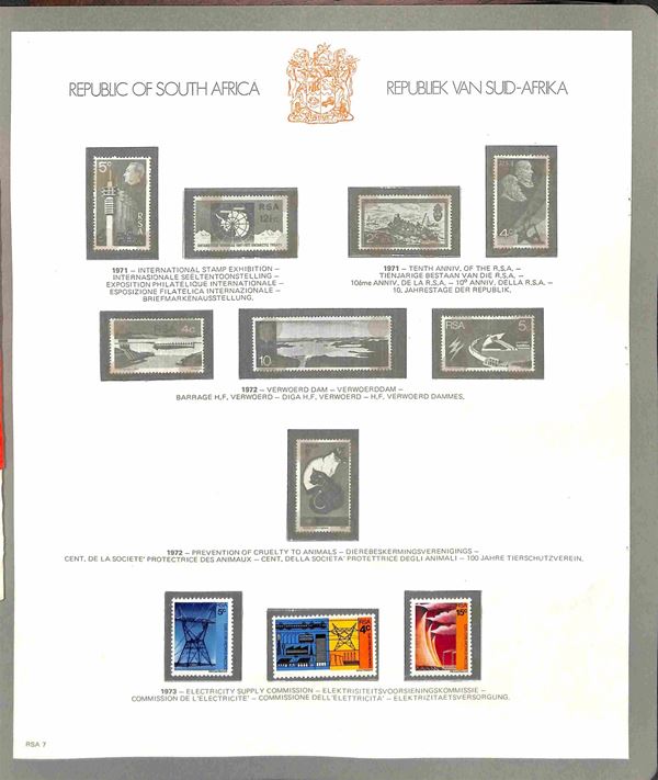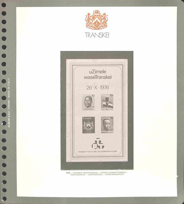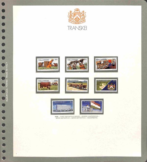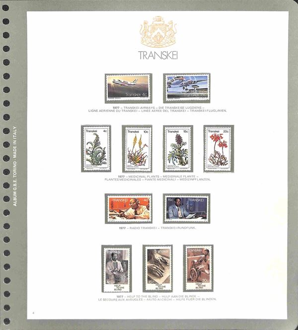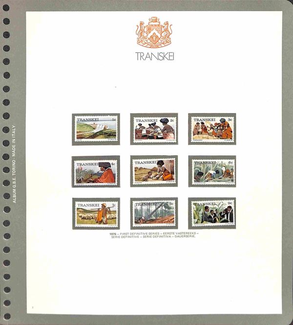SUD AFRICA - 1973/2006 circa - Collezione molto avanzata di valori nuovi del periodo montati in 2 album GBE uno Sud West Africa dal 1973 al 1985 e uno del Transkei dal 1976 al 1989 pił album a tasche con valori sciolti pił recenti foglietti e libretti non montati - bell'insieme - merita esame