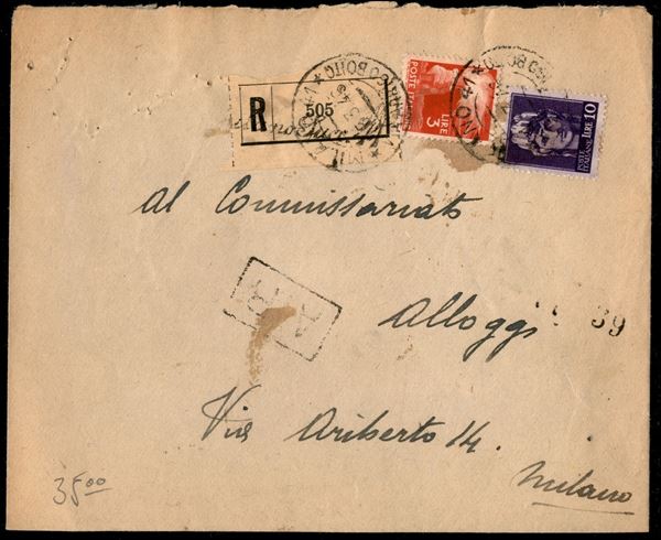Tre raccomandate per cittą (una in tariffa) - una affrancata con 10 lire Imperiale + complementari e due con 10 lire imperiale senza fasci + complementari