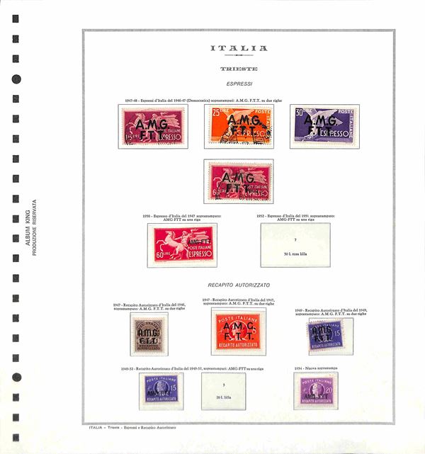 TRIESTE AMG-FTT - 1947/1954 - Collezione avanzata di valori nuovi e usati del periodo montata su fogli d'album Marini - valore di catalogo oltre 3000€ - da esaminare
