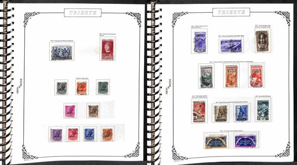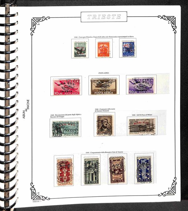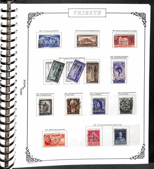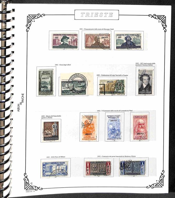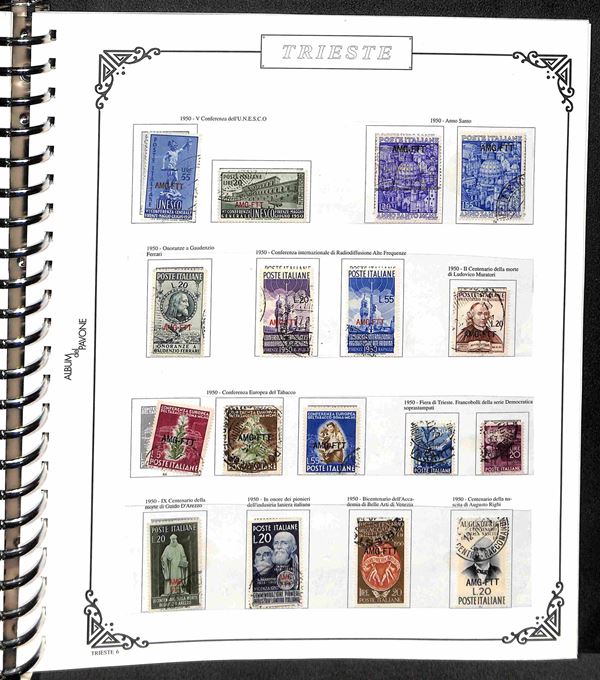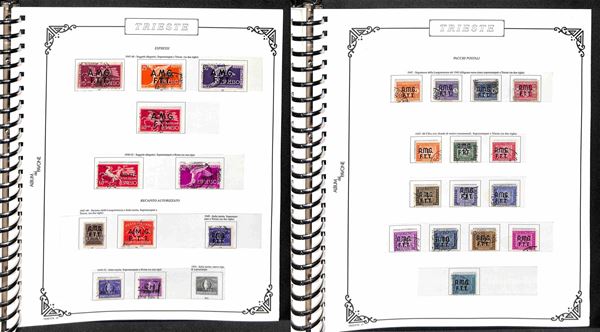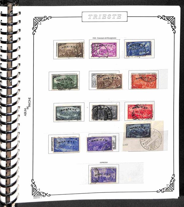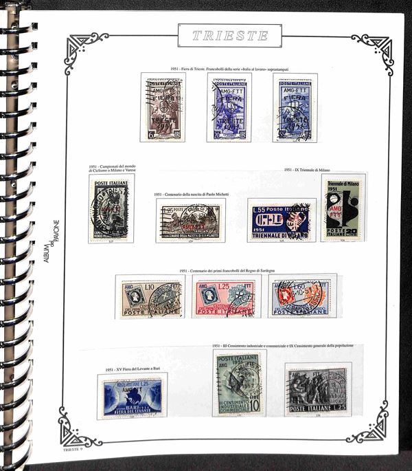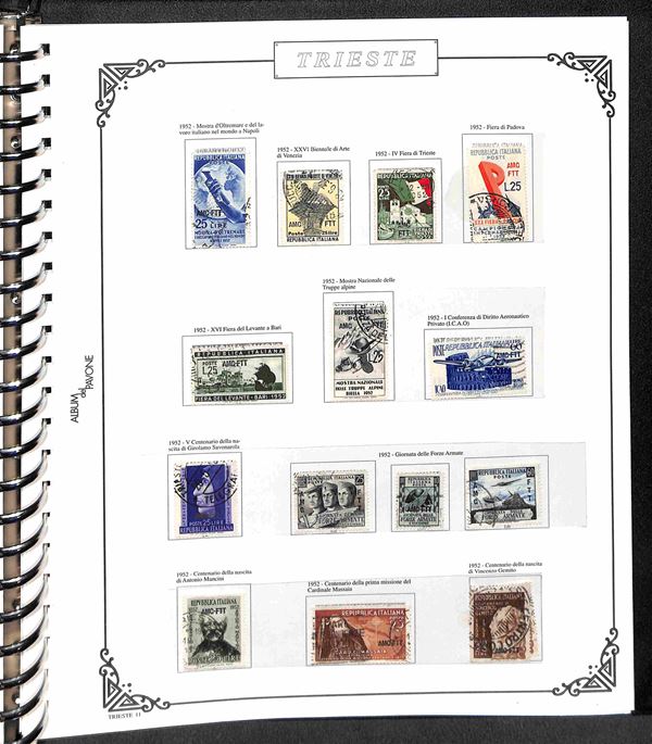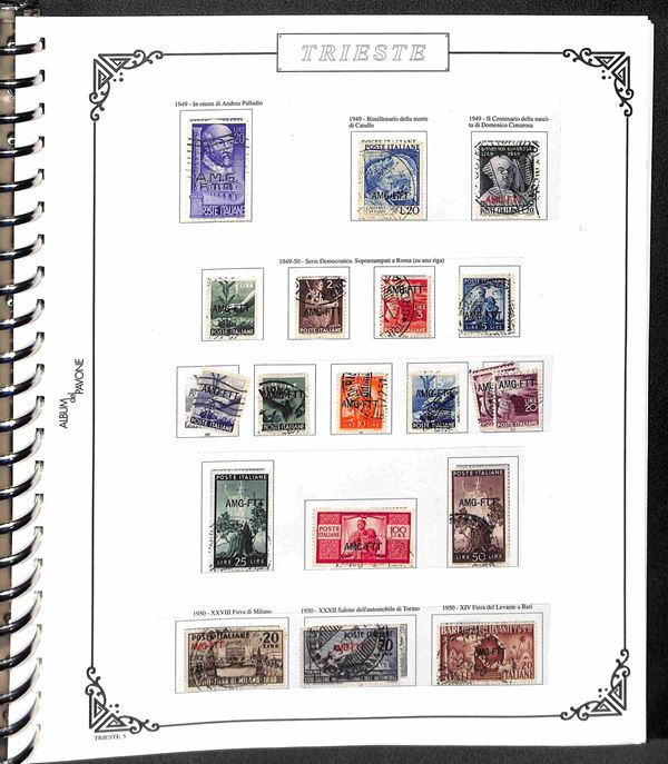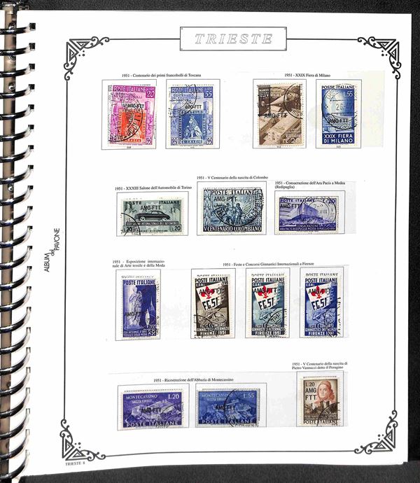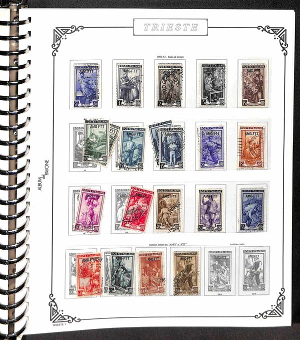 TRIESTE AMG-FTT - 1947/1954 - Collezione dei valori usati nel periodo in album - completa dei valori tipo di Posta Ordinaria + Aerea (mancano 20/26) + Espressi + Recapito + Segnatasse (mancano 16/28) - ottimo insieme - valore di catalogo oltre 4000€ - merita esame