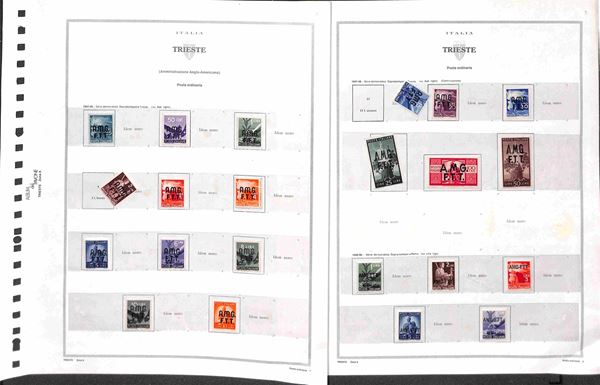 TRIESTE AMG-FTT - 1947/1954 - Collezione di valori del periodo nuovi con gomma integra in fogli d'album - completa dei valori tipo di Posta Ordinaria (manca 34) + Aerea + Espressi + Recapito + Pacchi Postali (mancano 10/12) + Pacchi in Concessione + Segnatasse - ottimo insieme - alto valore di catalogo