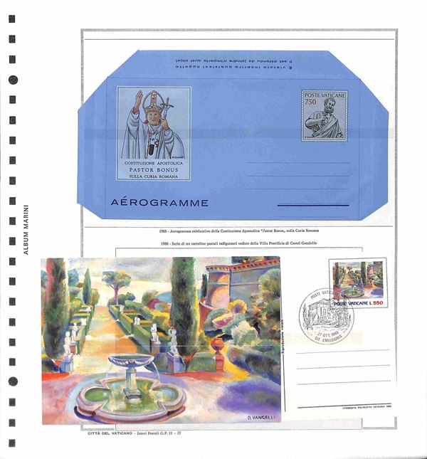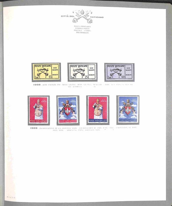 VATICANO - 1958/1994 - Collezione avanzata di valori nuovi buste e interi del periodo in 3 album - 1 album GBE dal 1958 al 1985 e 1 album Marini dal 1986 al 1994 più più moltissimi valori sciolti anche dopo il 2000 con facciale per € 650 in due buste e fogli Marini aggiornamento nuovi annate 2007 2017/2018 - ottimo insieme