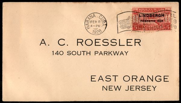 Volo Lindbergh - Busta da Cuba per il New Jersey del 8.2.28