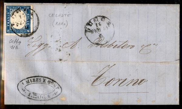 15 cent celeste latteo (11d) lettera da Lucca a Torino del 14.2.63 - Colla
