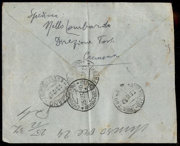 1,75 lire + 1 lira Bimillenario Augusteo (424) - bordo di foglio - isolato su busta espresso da Cremona a Bolzano del 25.12.37 - busta con pieghe d'archivio e ingiallimenti sul valore