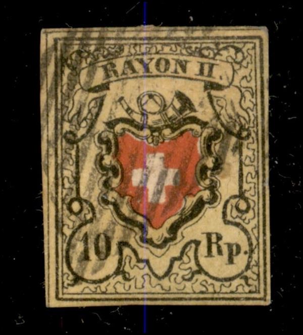 1850 - 10 Rappen giallo nero e rosso (Michel 8 II Zst. 16 II) Rayon II - usato