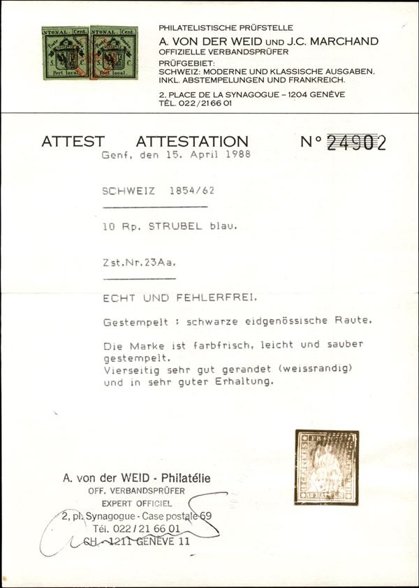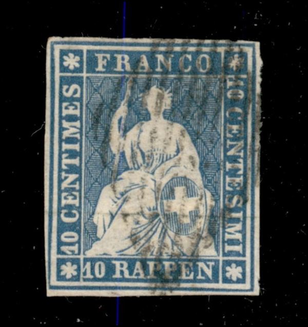 1854 - 10 Rappen (Michel 14 I Zst 23Aa) carta sottile della prima tiratura - usato - molto bello - cert. Weid
