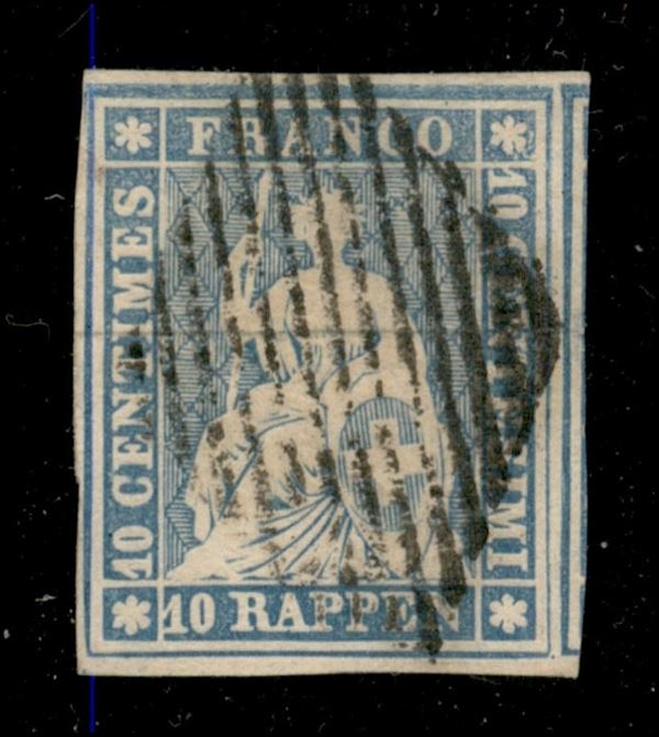 1854 - 10 Rappen (Michel 14 Zst 23A) - usato - molto bello