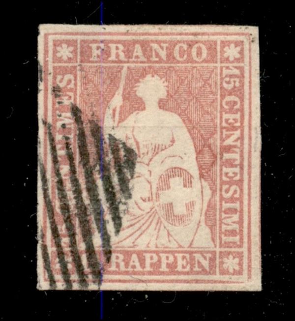 1854 - 15 Rappen (Michel 15 I Zst. 24Aa) carta sottile della prima tiratura - usato - molto bello - cert. Hermann