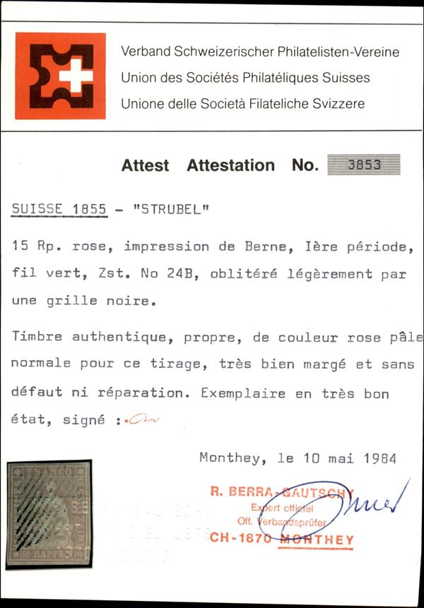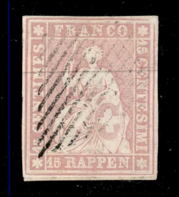 1855 - 15 Rappen (Michel 15 II Zst 24B) - usato - cert. Gautschy