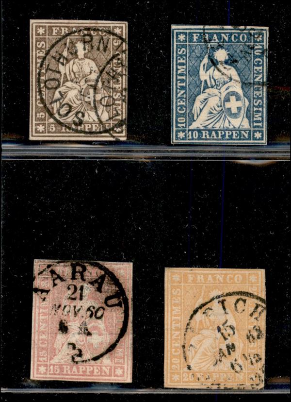 1858/1862 - Insieme di quattro valori carta spessa - 5 10 15 20 Rappen (Michel 13/16 Zst. 22/25) - usati - molto belli