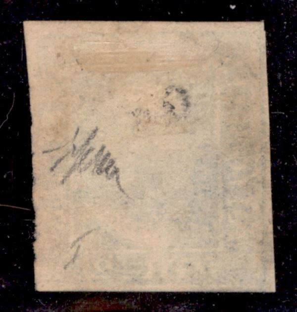 1859 - 2 grana azzurro vivo (7f - seconda tavola - ritocco 71) - ottimi margini - usato - molto bello