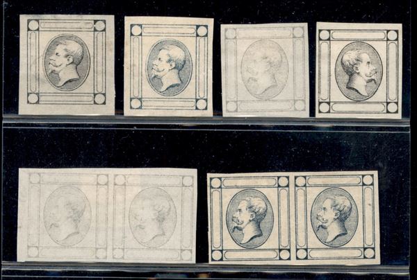 1863 - Saggi del 15 cent Litografico - 4 singoli + 2 coppie (Bolaffi 7h/7n) - nuovi senza gomma
