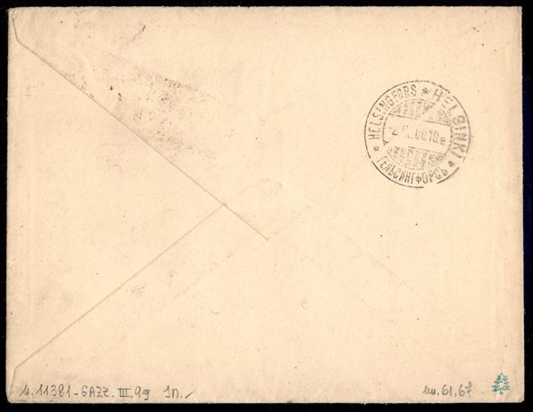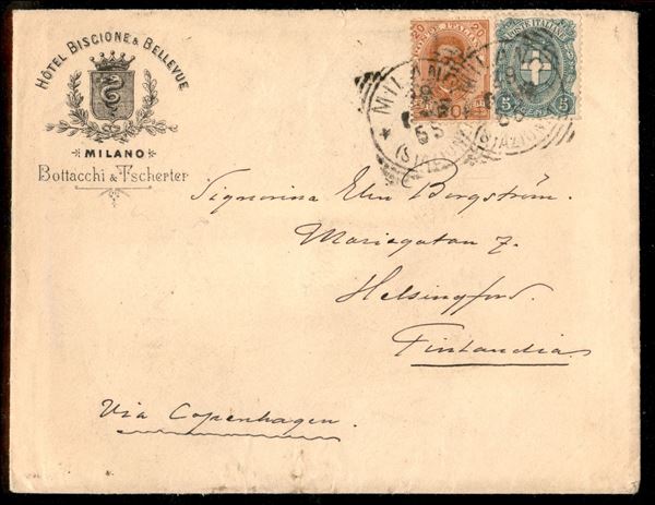 1891 - 20 cent arancio (61) + 5 cent verde (67) su busta da Milano 29.10.00 a Helsingfords (oggi Helsinki) - bollo di arrivo - ex coll. Provera