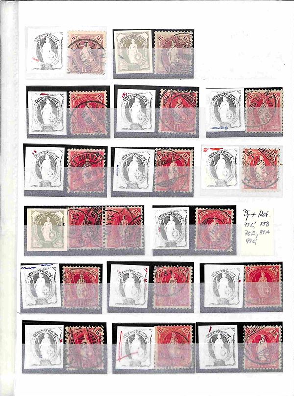 1894/1904 - Piccolo studio di varietà dell'emissione Dea in piedi (Michel 58/80 Zst. 71/99) - 33 valori usati montati su una pagina d'album