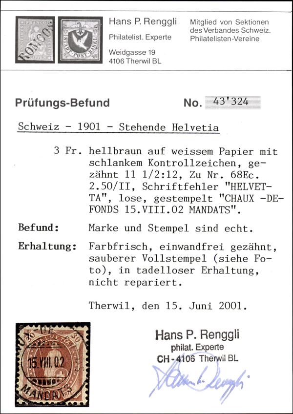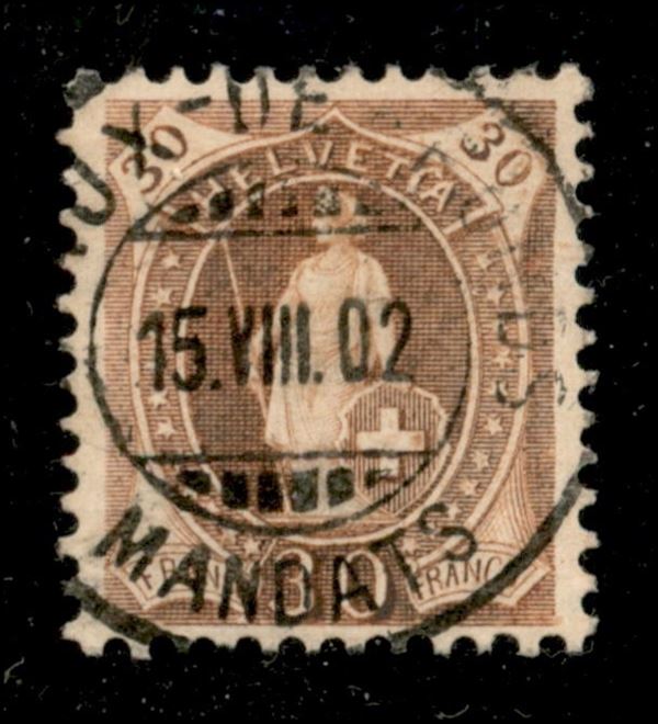 1901 - 30 cent (Michel 60D Zst 68Ec) con errore HELVETTA - usato - cert. Renggli