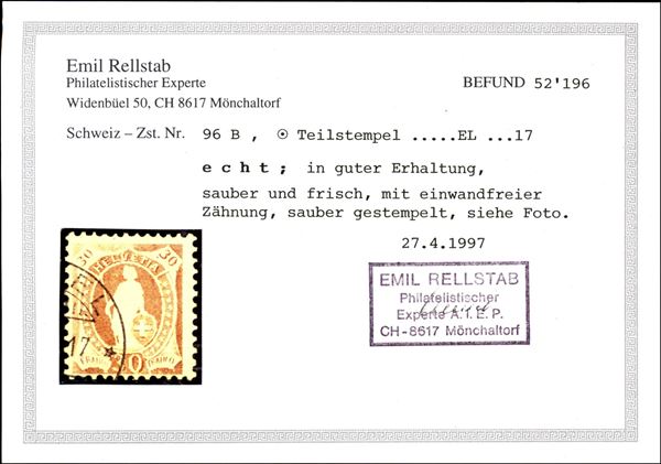 1907 - 30 cent (Michel 90C Zst. 96B) dentellato 11 1/2:11 - usato - cert. Rellstab