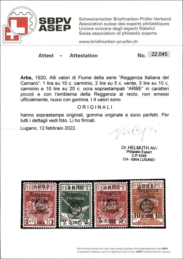 1920 - Non Emessi - 4 valori - serie completa - gomma originale - cert. Avi