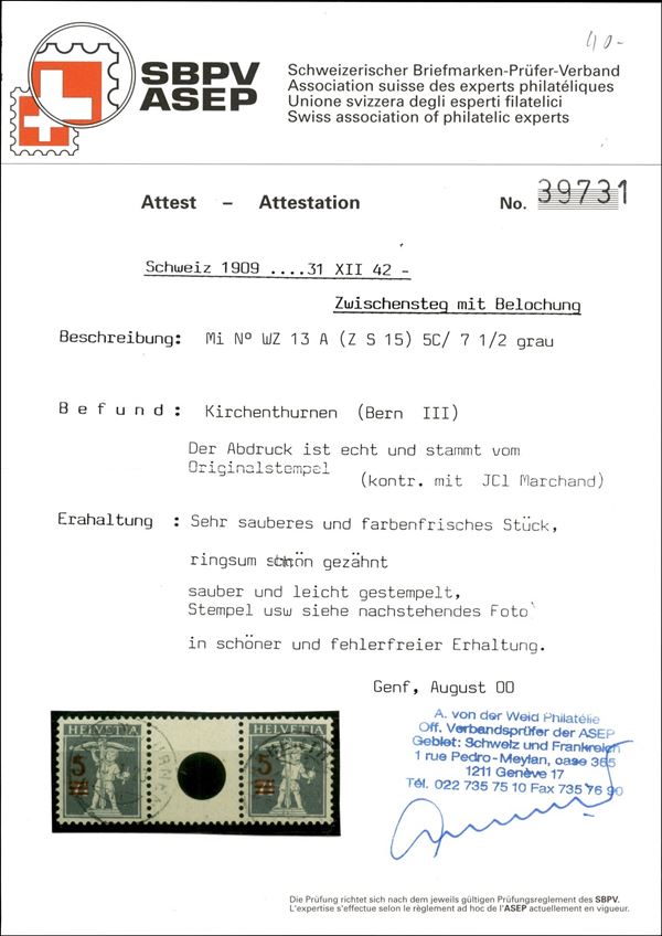1921 - Correlati con foro grande - 5 su 7 1/2 cent (Michel 13A Zst. 515) - usato - cert. Weid