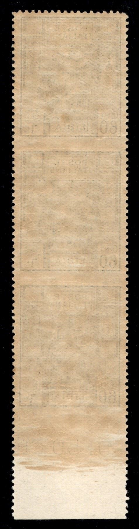 1924 - 60 cent Sibilla (42 l) striscia di tre bordo foglio - unica dentellatura orizzontale - gomma integra