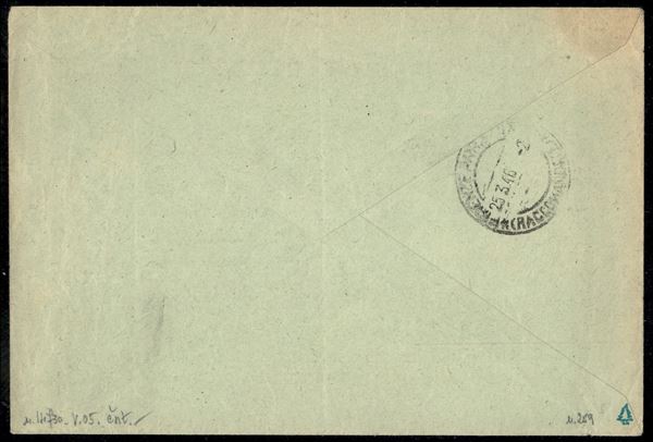 1929 - 20 lire verde giallo (259) isolato su atto giudiziario da Firenze 23.5.46 per cittą - bollo di arrivo - Raybaudi - ex coll. Provera