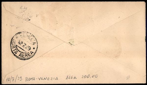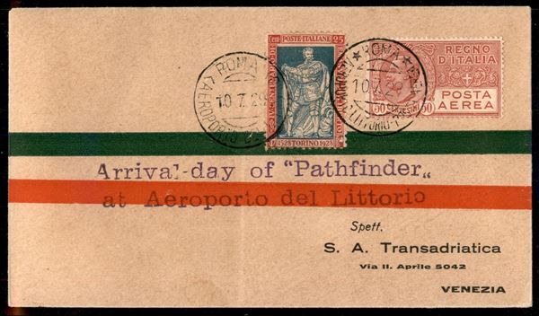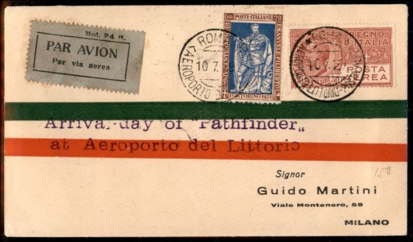 1929 (10 luglio) - Arrivo del Pathfinder (Longhi 1939 + 1940) - due aerogrammi con diverse affrancature diretti a Milano e Venezia