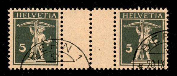 1930 - correlati con dentellatura verticale - 5 + 5 cent verde (Michel 38A Zst. 540) - usato - timbrato al retro