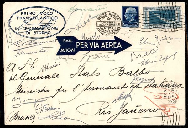 1930 (30 dicembre) - Crociere Italia Brasile - Longhi 2248 - Aerogramma affrancato con 7,70 lire pił complementare (Aerea 25) - firma Balbo in rosso