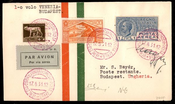 1931 - Venezia Budapest - Aerogramma da Venezia 17.8.31 a Budapest con firma autografa del Pilota (Longhi 2469)