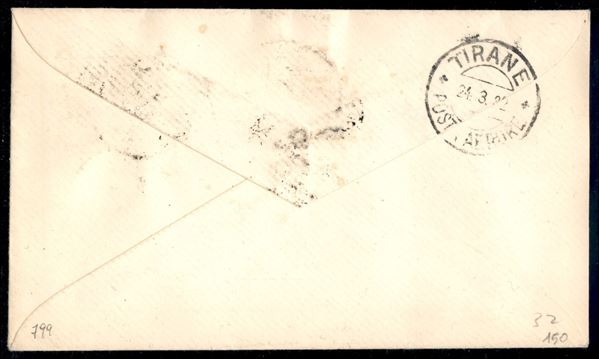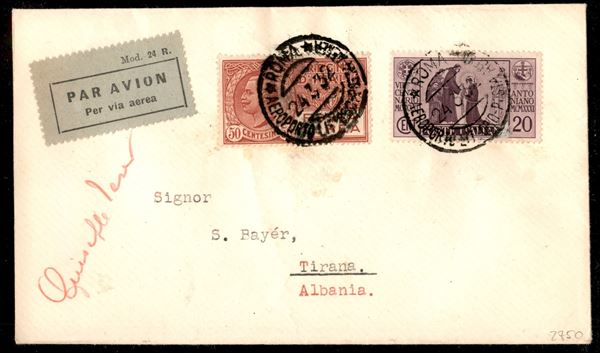 1932 - Volo Roma Tirana - Aerogramma da Roma 24.3.32 a Tirana - firma autografa del pilota - bollo di arrivo