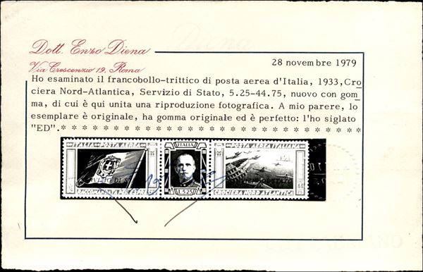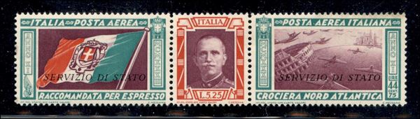 1933 - Servizio di Stato - Trittico da 50 lire (1 - Servizio Aereo) - gomma originale (praticamente integra) - A. Bolaffi + cert. En. Diena