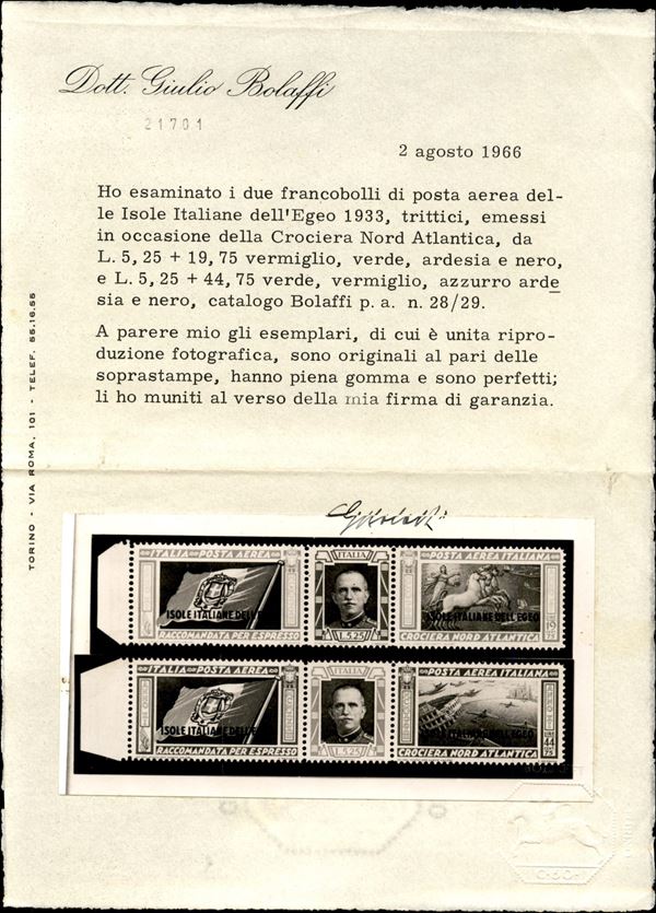 1933 - Trittici Isole Italiane dell'Egeo (28/29) - serie completa - nuovi con gomma originale integra - cert. G. Bolaffi