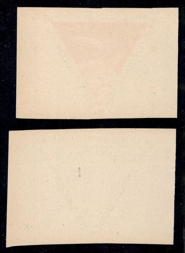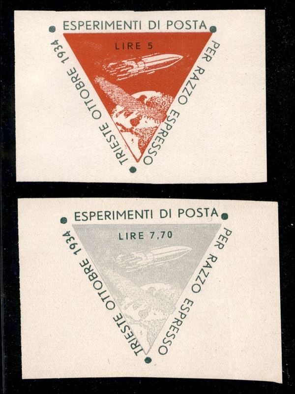 1934 - Due vignette Posta Razzo da 5 lire + 7,70 lire - nuove senza gomma