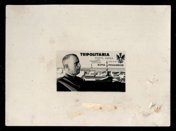 1934 - Prova fotografica dell'emissione di Posta Aerea Roma Mogadiscio - qualche aderenza e fori di punto metallico sul bordo inferiore destro - non comune