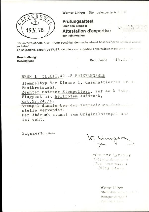 1939 - 40 su 50 cent soprastampato (Michel 293a Zst. 24a) con soprastampa rosso arancio - usato - cert. Liniger