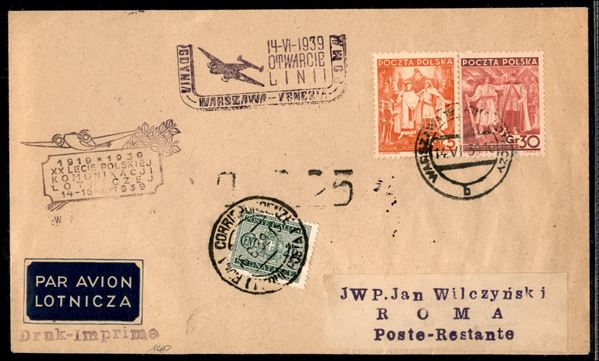 1939 (14 giugno) - Primo Volo Varsavia Roma con timbri speciali - Longhi 3859
