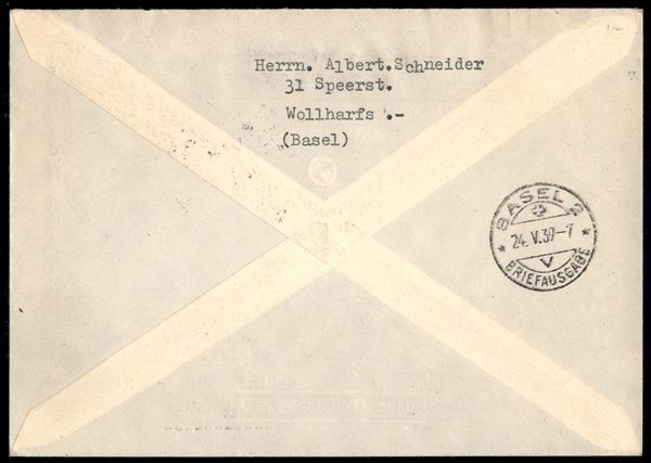 1939 (22 maggio) - Zurigo Bruxelles/West Europa Roundflug - aerogramma raccomandato