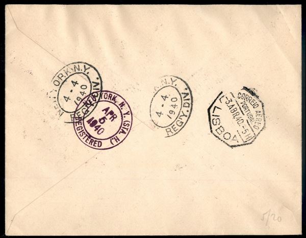 1940 (2 aprile) - Lisbona New York - aerogramma raccomandato da Porto