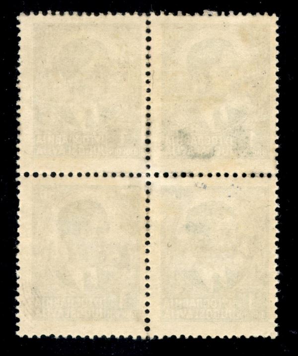 1941 - 1 din (3Bb + 3Bb + 3B + 3B varietà ga) - quartina con soprastampa obliqua (in alto) - senza Ci in basso a destra - gomma originale - non catalogato