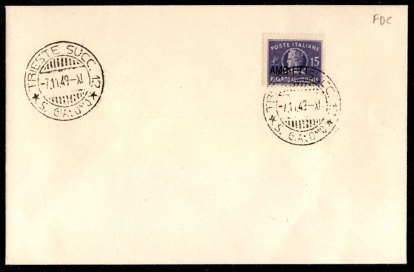 1949 - 15 lire violetto (4 - Recapito Autorizzato) usato su busta FDC - raro