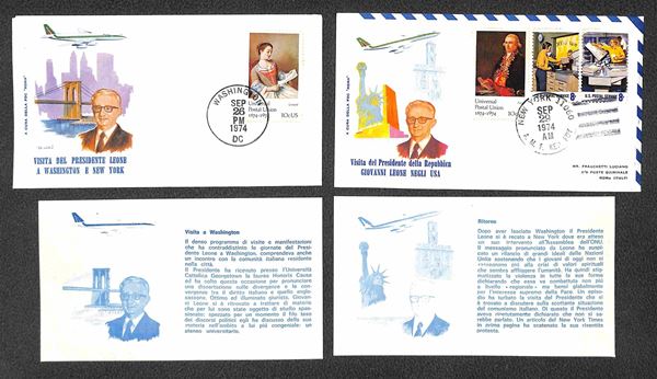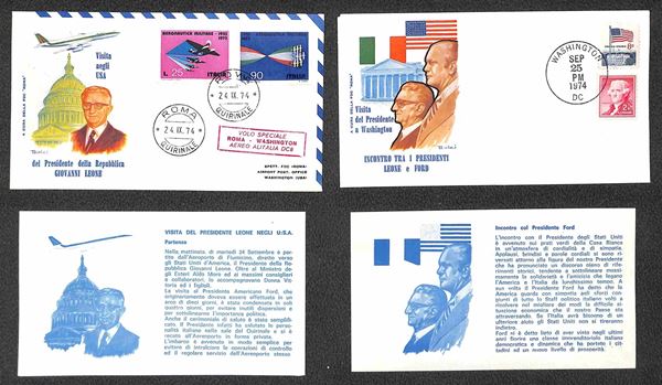 1974 (24 settembre) - Volo Speciale Roma Washington - quattro buste "FDC Roma" delle tappe della visita del Presidente Leone negli USA