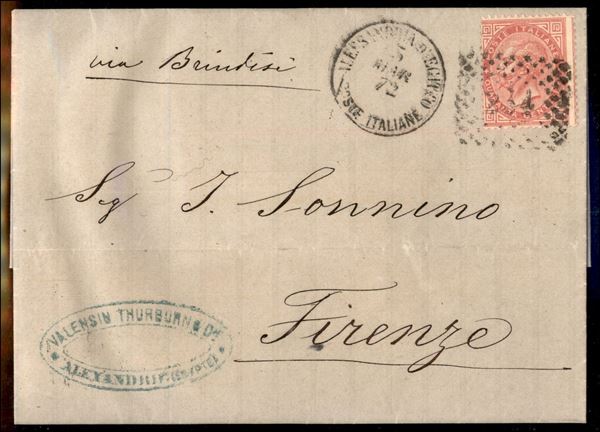 40 cent Torino (T20) annullato con numerale a rombi di Alessandria d'Egittto su busta per Firenze del 5.3.72 - via Brindisi