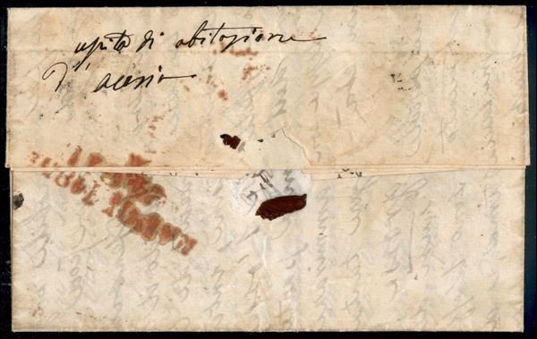 5 bai (6Ad - senza E) + 8 bai (9 - cornice rotta sopra B di Bollo) - Franca (ovale annullatore) + Roma Franca (in rosso) raccomandata per Napoli del 22.6.1858