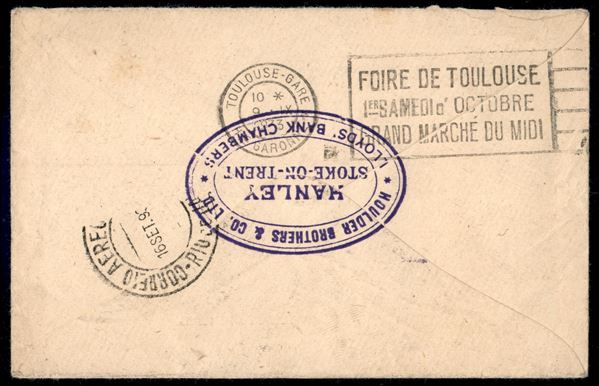 Aerogramma affrancato con 1 scellino (165) + 2/6 scellini Cavalli Marini (153B) da Hanley Stoke on Trent a Rio de Janeiro del 5.9.33 via Francia