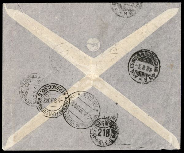 Aerogramma raccomandato affrancato con due 2 lire Imperiale Aerea (15) + 50 cent Imperiale Aerea (11) + 10 lire Imperiale (258) da Milano per Buenos Aires del 4.8.39