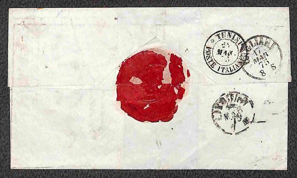 Busta affrancata con 6 pence (44) da Londra a Tunisi del 11.3.75 via Cagliari - rara destinazione
