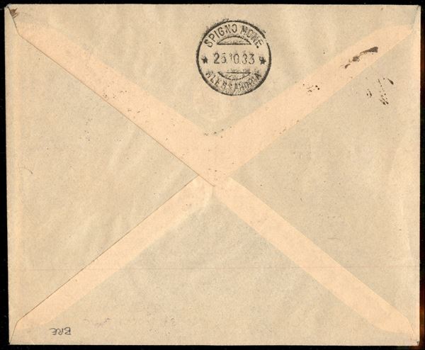 Busta raccomandata viaggiata 23.10.33 affrancata con 10 pił 50 lire Cinquantenario Eritreo (31 + Aerea 21) - rara - Oliva