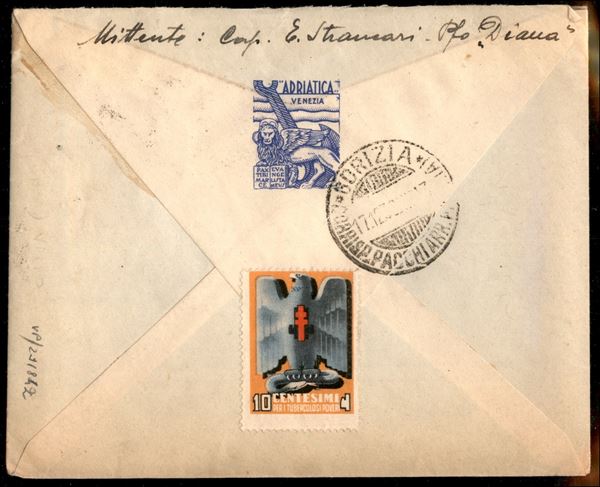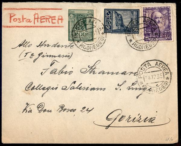 Busta viaggiata da Rodi 14.12.39 per Gorizia con affrancatura mista Egeo/Regno