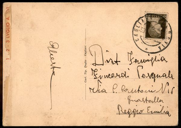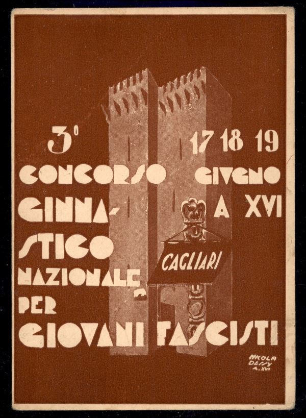 Cartolina 3° Concorso Ginnastico Nazionale per Giovani Fascisti 17/19 Giugno XVI - 10 cent Imperiale (245) annullato Cagliari 30.10.37