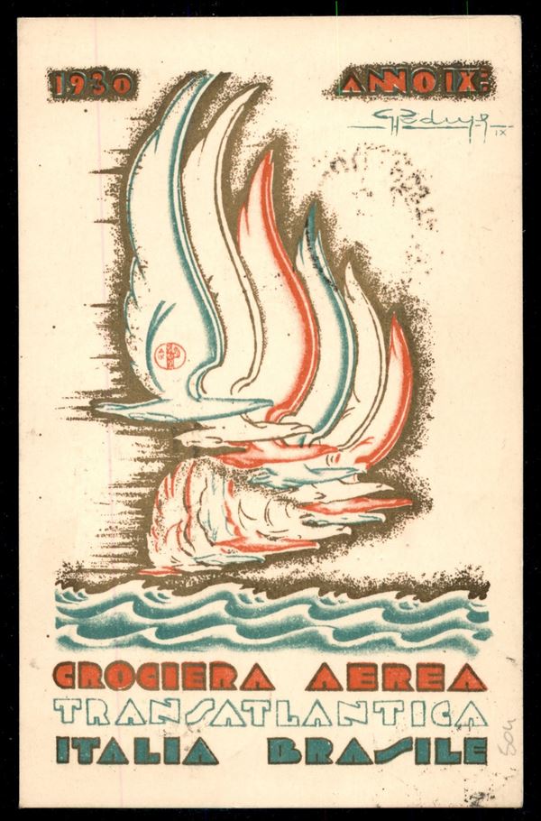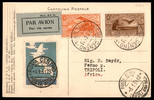 Cartolina della Crociera Transatlantica Italia Brasile con vignetta commemorativa pił due esemplari Bimillenario Virgilio (283 + PA 21) da Roma a Tripoli del 4.1.31